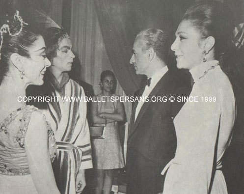 The world famous ballet artists, Rudolf Nurejev and Margot Fonteyn, visited Iran in 1967 to dance the Swan Lake and Le Corsaire on the national scene. in 1969, a prominent Iranian ballet dancer, Bijan Kalantari, graduated from the School of Metropolitan Opera and Ballet visited Iran to stage a ballet production called "An Evening of Ballet" with the participation of other Iranian ballet dancers and their partners, working in the USA and Germany. This was the first time that Bijan Kalantari, Haydeh Changizian and Ali Pourfarrokh performed at the Roudaki Hall Opera.