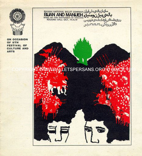 The repertoire of the company consisted of both classical and contemporary ballets. New versions of old classics were presented, like the Persian history of "Scheherezadeh" (Shahrzad), choreographed by Ann Heaton after Fokine. New choreographies based on narrations and themes with national character were also produced. In 1971, Robert Thomas created the modern ballet "Myth of the Creation". "Bijan and Manijeh", the company's first full-length Persian classical ballet, choreographed by Haideh Ahmadzadeh and Robert Urazgildiev, had its premier in 1975. Prominent Iranian musicians Melik Aslanian and Hossein Dehlavi composed the music of these ballets.