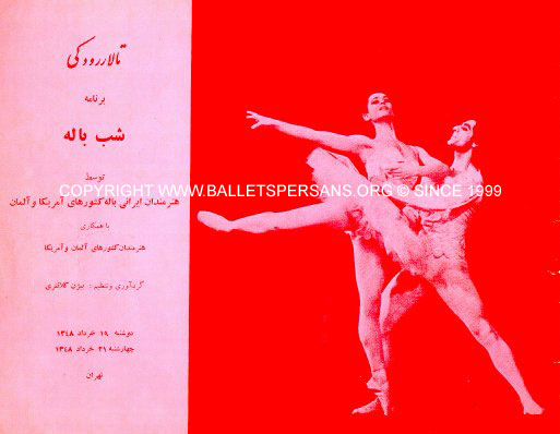 Afshin Mofid and Maryam Mahdaviani joined New York City Ballet, Shirin Kiani was engaged in Santa Barbara Ballet, Susanne and Fariba Arbabzadeh performed with Het National Ballet. Amir Hosseinpour, has created several works for Paris Opera, Royal Ballet in London, La Scala in Italy and Bayerische Staatsoper in Germany etc.